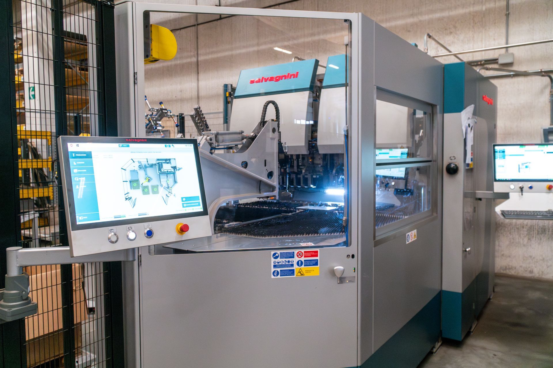 - 3 Laser a fibra ottica mod. L3 - 4 kW (3000x1500) connessi a magazzini automatici MV da 345 vassoi – Salvagnini